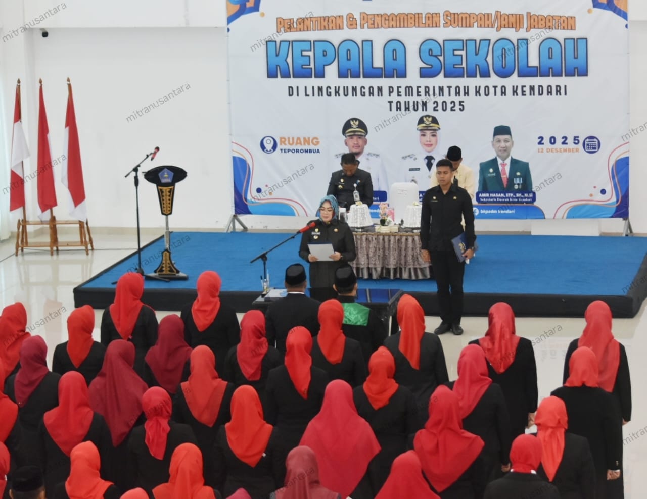 KENDARI, MITRANUSANTARA.ID – Wali Kota Kendari melantik 111 kepala sekolah dari tingkat TK, SD, hingga SMP, baik negeri maupun swasta, dalam upacara resmi yang digelar sebagai bagian dari penguatan tata kelola pendidikan di daerah. 111 kepala sekolah tersebut terdiri dari 27 kepala sekolah TK Negeri dan TK Swasta, 65 SD Negeri dan Swasta dan 19 kepala sekolah SMP Negeri dan Swasta.