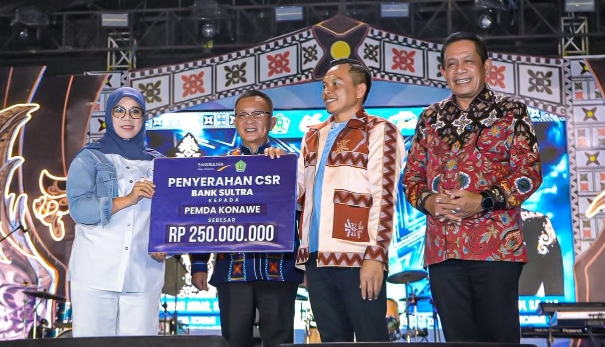 Bantuan tersebut diserahkan secara simbolis pada puncak perayaan HUT ke-66 Kabupaten Konawe di kawasan Inolobunggadue Central Park (ICP) Unaaha, Sabtu (18/4/2026). Penyerahan dilakukan oleh Kepala Bank Sultra Cabang Unaaha, Indri Devi Yanti Saranani, kepada Bupati Konawe, Yusran Akbar, disaksikan Wakil Gubernur Sulawesi Tenggara, Hugua, serta Wakil Bupati Konawe, Syamsul Ibrahim.