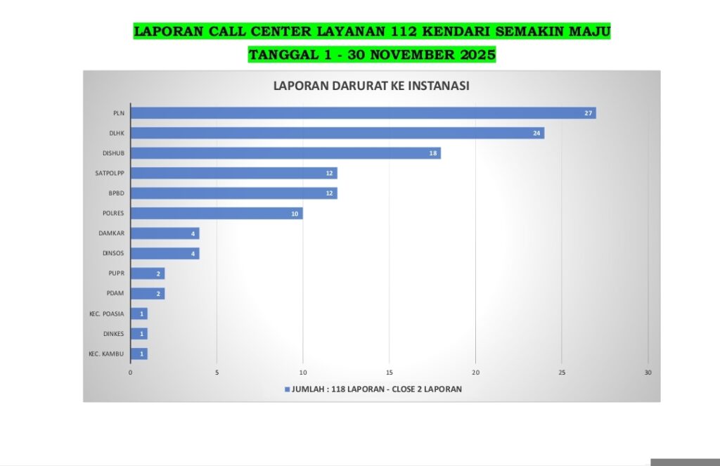 Laporan November ini menjadi bahan evaluasi Pemkot Kendari dalam penguatan sistem layanan darurat yang lebih responsif, terintegrasi, dan berorientasi pada keselamatan warga.