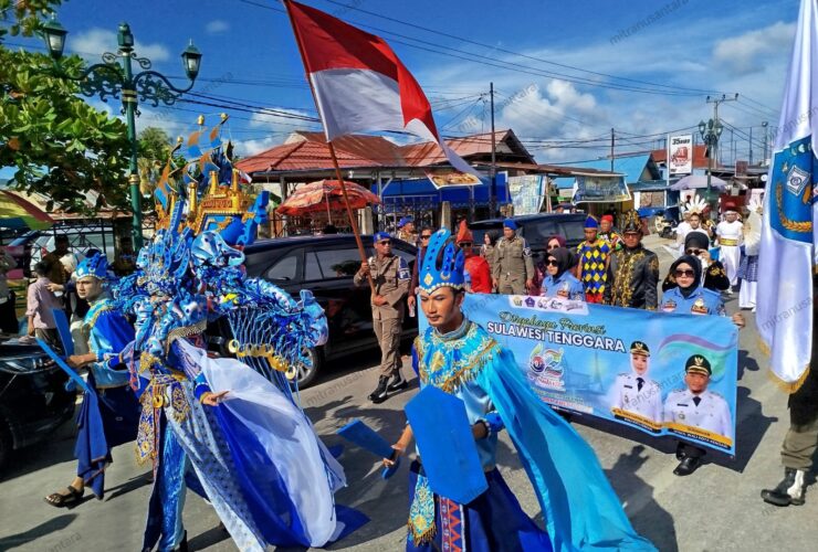 Tampil Paling Mencolok di Pawai Budaya HUT Sultra ke-62, Kendari Usung Harmoni Maritim