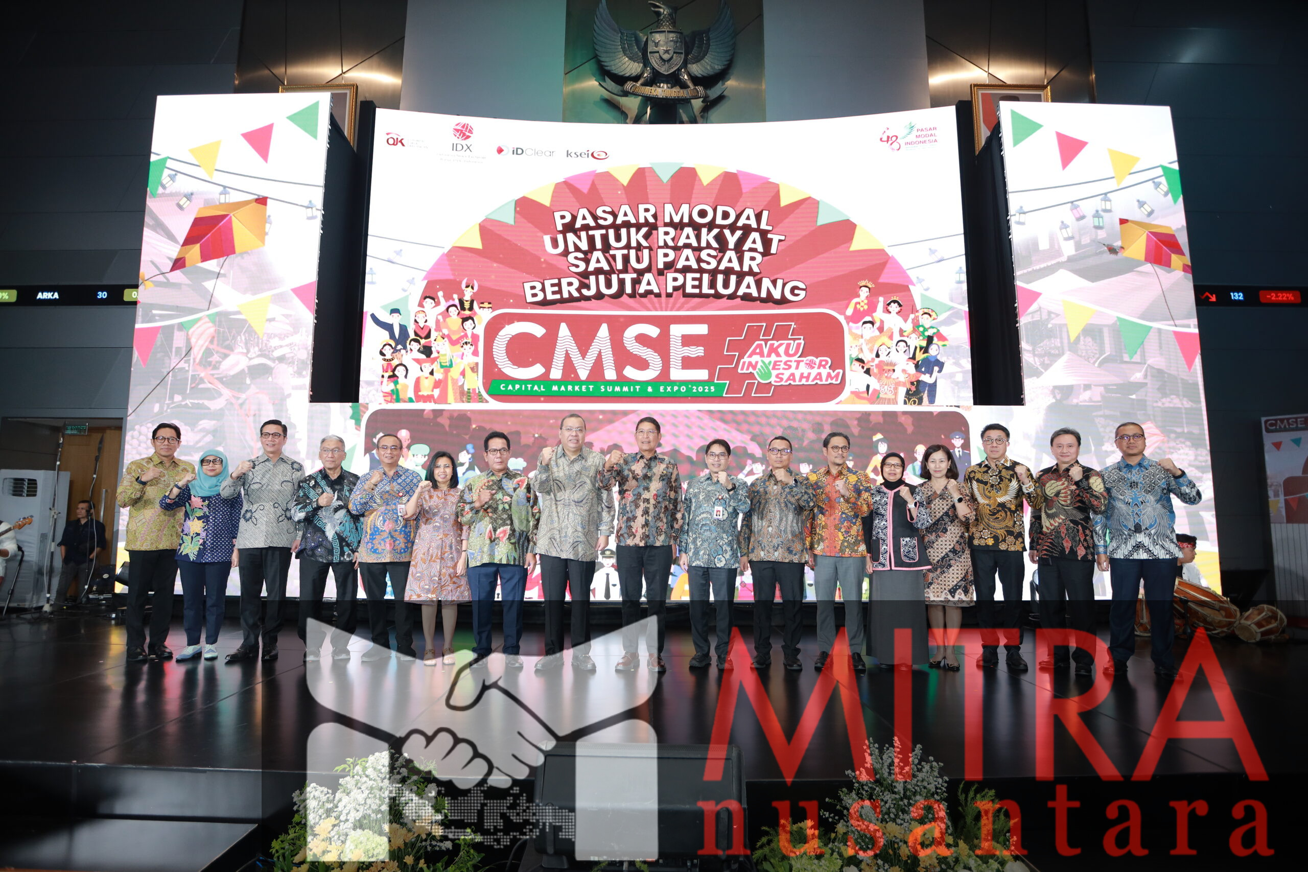 JAKARTA, MITRANUSANTARA.ID – Penyelenggaraan Capital Market Summit & Expo (CMSE) 2025 yang mengusung tema “Pasar Modal untuk Rakyat, Satu Pasar Berjuta Peluang”, resmi menutup seluruh rangkaian acaranya pada Sabtu (18/10). Selama dua hari pelaksanaan, yakni 17-18 Oktober 2025 di Main Hall Bursa Efek Indonesia (BEI), antusiasme khalayak yang sangat tinggi hingga mencatatkan rekor 11.682 pengunjung langsung (onsite), meningkat 51,4% dibandingkan 7.716 pengunjung langsung CMSE 2024 yang sebelumnya berlangsung sehari lebih banyak, yakni tiga hari.