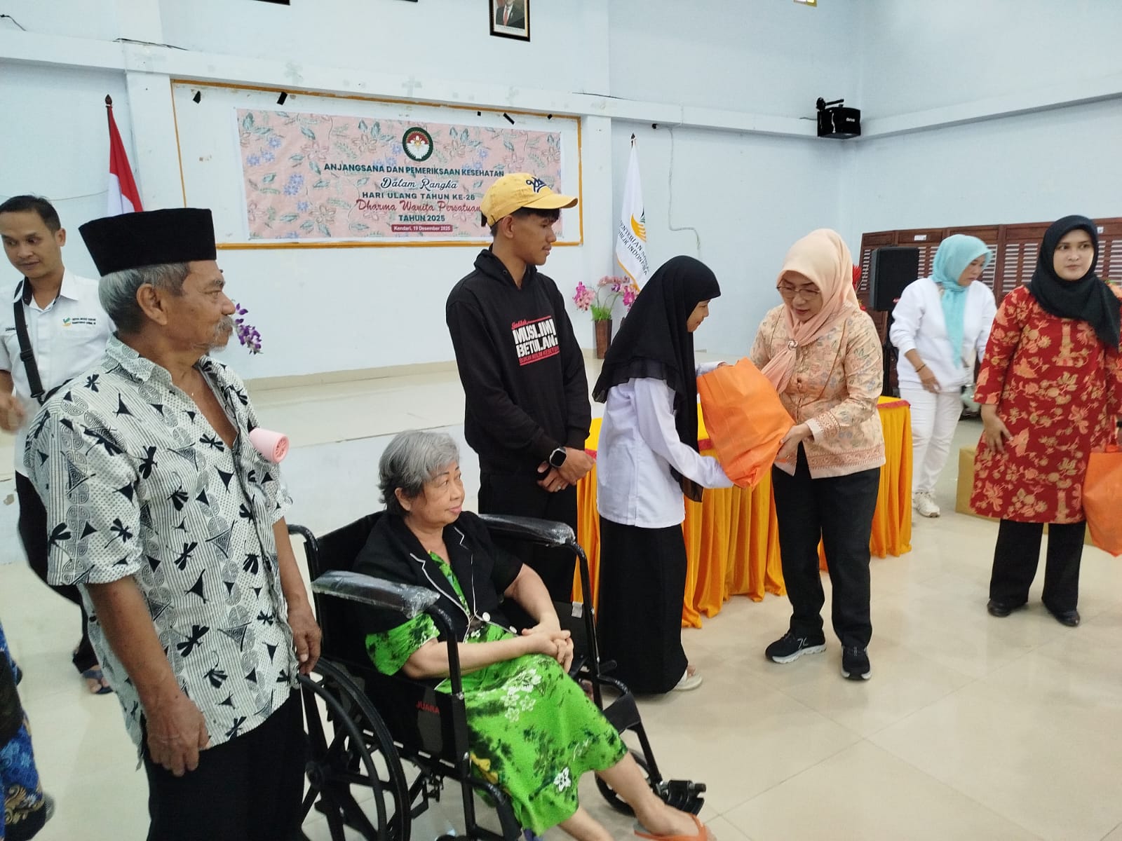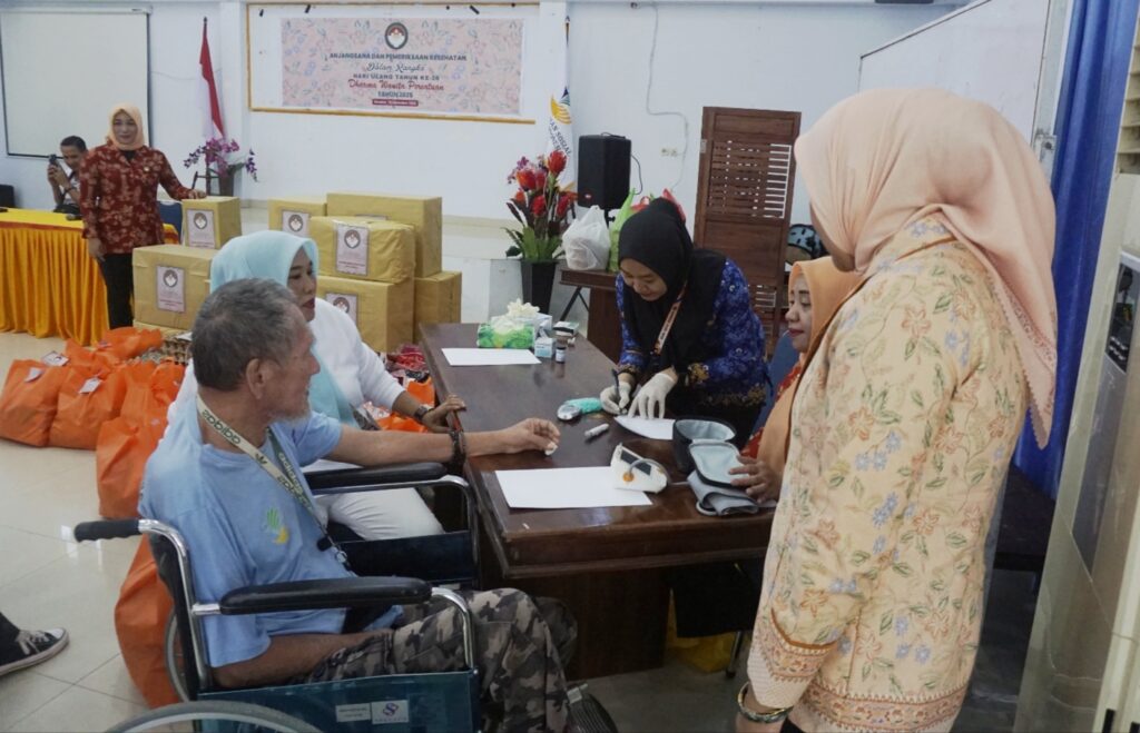 Selain penyaluran bantuan, kegiatan ini juga dimanfaatkan untuk pemeriksaan kesehatan gratis. Penghuni sentra mendapatkan layanan cek tensi dan gula darah, baik bagi lansia maupun penghuni usia muda. Edukasi kesehatan turut diberikan, terutama terkait pentingnya pola makan sehat untuk mencegah penyakit kronis sejak dini.