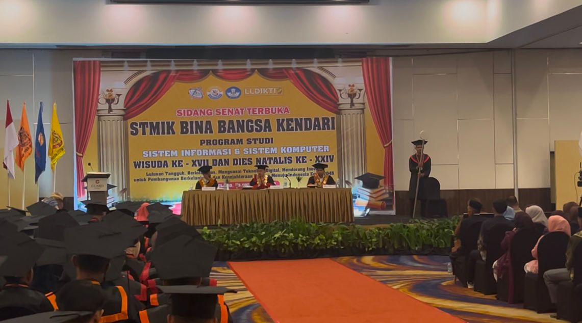 KENDARI, MITRANUSANTARA.ID – Dies Natalis STIMIK Bina Bangsa Kendari yang ke-24 dirangkaikan bersamaan dengan pengukuhan wisudawan dan wisudawati yang dilaksanakan di salah satu hotel ternama di Kota Kendari pada Senin (6/10/2025). Forum wisuda ke-17 STIMIK Bina Bangsa tersebut tercatat sebanyak 275 wisudawan dan wisudawati lulus dan siap bersaing di era digital yang kian berkembang.