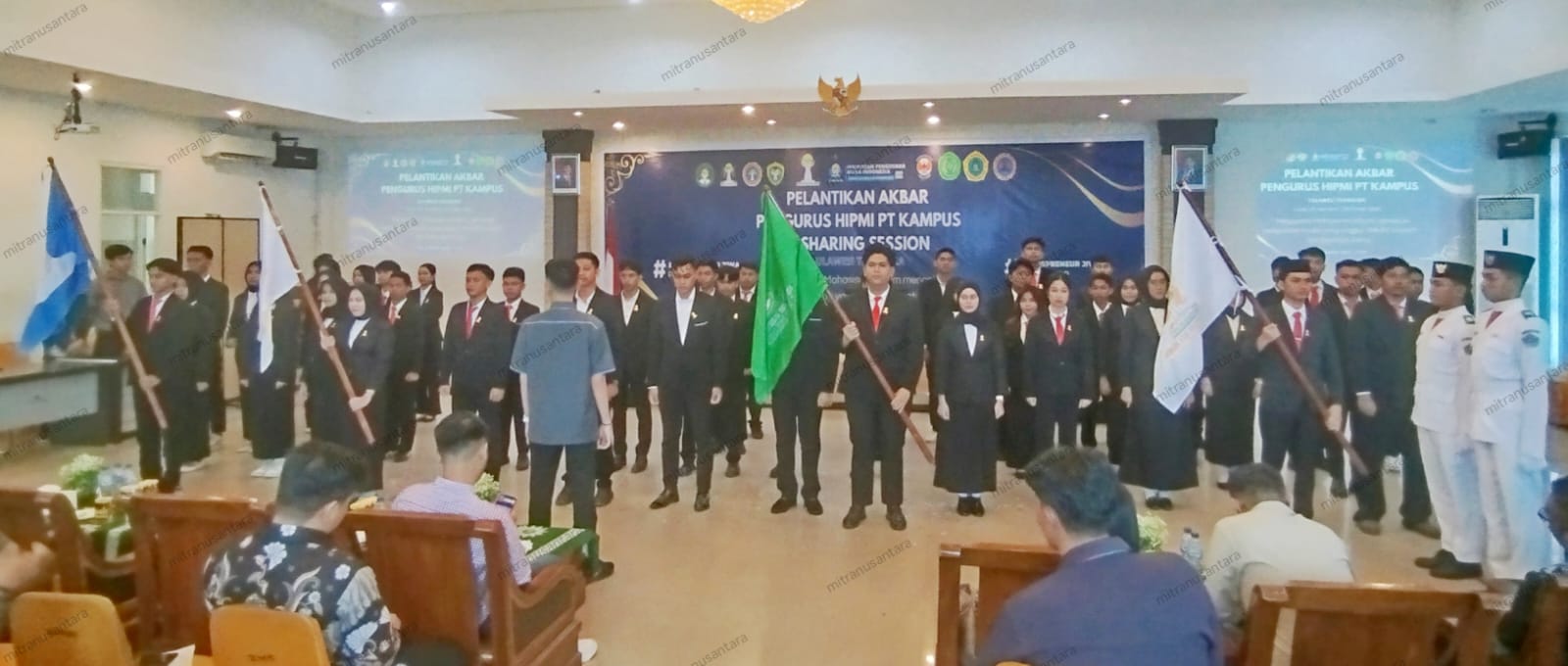 Pengukuhan ditandai dengan pembacaan ikrar oleh Ketua Umum HIPMI PT Sultra, Warham, serta penyerahan bendera pataka kepada masing-masing ketua umum HIPMI PT dari empat kampus yang telah melalui proses seleksi dan kaderisasi.