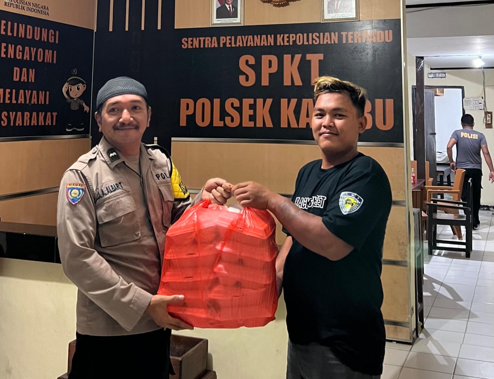 Sejumlah paket makanan sahur dibagikan kepada personel kepolisian yang sedang bertugas piket, petugas keamanan (satpam), serta para pengendara yang melintas di jalan dalam kota pada waktu dini hari.