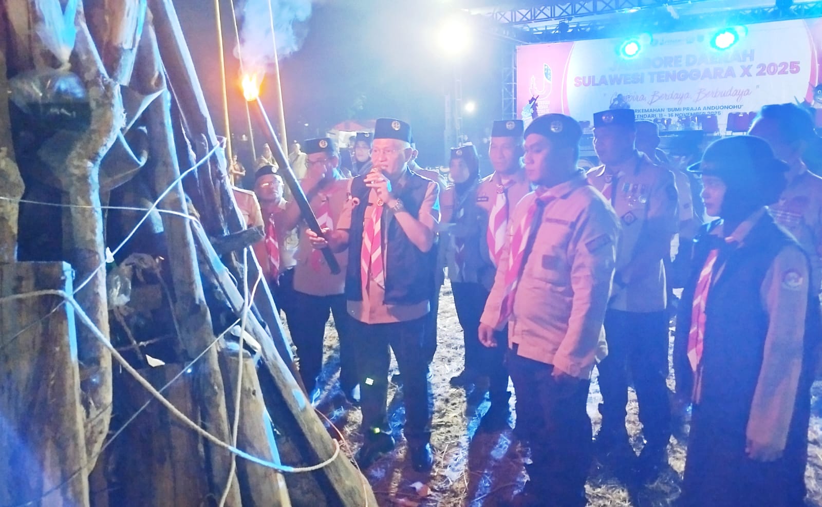 KENDARI – Gelaran Jambore Daerah (Jamda) X Sulawesi Tenggara 2025 resmi berakhir di Bumi Perkemahan Bumi Praja Andonohu, Sabtu (15/11/2025) malam. Penutupan yang dipimpin Ketua Kwarda Sultra, Asrun Lio, menghadirkan suasana meriah sekaligus penuh harapan baru bagi para anggota Pramuka dari 16 kabupaten/kota yang ikut ambil bagian.