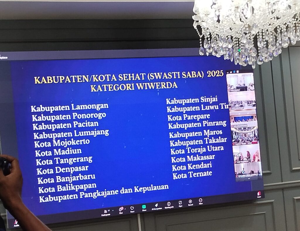 KENDARI, MITRANUSANTARA.ID – Pemerintah Kota Kendari berhasil mempertahankan penghargaan Kota Sehat kategori Swasti Saba Wiwerda pada tahun 2025. Pengumuman penghargaan ini disampaikan Kementerian Kesehatan bersama Kementerian Dalam Negeri melalui gelaran daring yang turut disaksikan Wali Kota Kendari bersama Tim Kota Sehat di Ruang Rapat Wali Kota Kendari, Jumat (28/11/2025).