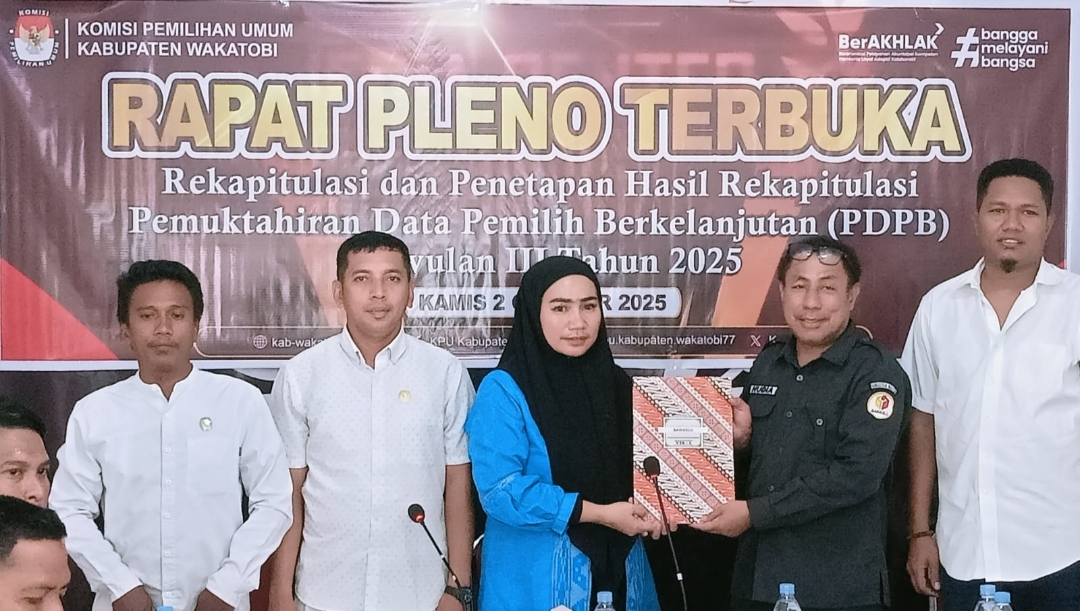 WAKATOBI, mitranusantara.id – Komisi Pemilihan Umum (KPU) Kabupaten Wakatobi menggelar Rapat Pleno Terbuka Rekapitulasi Pemutakhiran Data Pemilih Berkelanjutan (PDPB) Triwulan III Tahun 2025 di Kantor KPU Wakatobi. Dengan demikian, KPU Wakatobi menegaskan komitmennya menjaga kualitas data pemilih melalui mekanisme pemutakhiran yang terbuka, partisipatif, dan berkesinambungan. Kamis (2/10/2025).