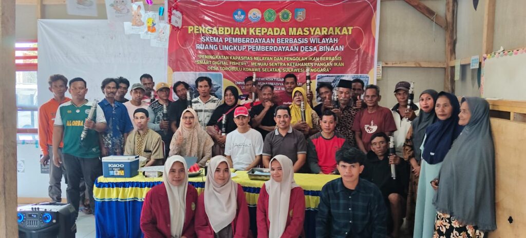 KONAWE SELATAN, MITRANUSANTARA.ID – Inovasi teknologi perikanan terus dikembangkan untuk memperkuat ketahanan pangan dan meningkatkan kesejahteraan masyarakat pesisir. Salah satunya melalui kegiatan Pengabdian kepada Masyarakat skema Pemberdayaan Berbasis Wilayah, yang digagas oleh Universitas Muhammadiyah Kendari (UMK) di Desa Torobulu, Kecamatan Laeya, Kabupaten Konawe Selatan, Minggu (19/10/2025).