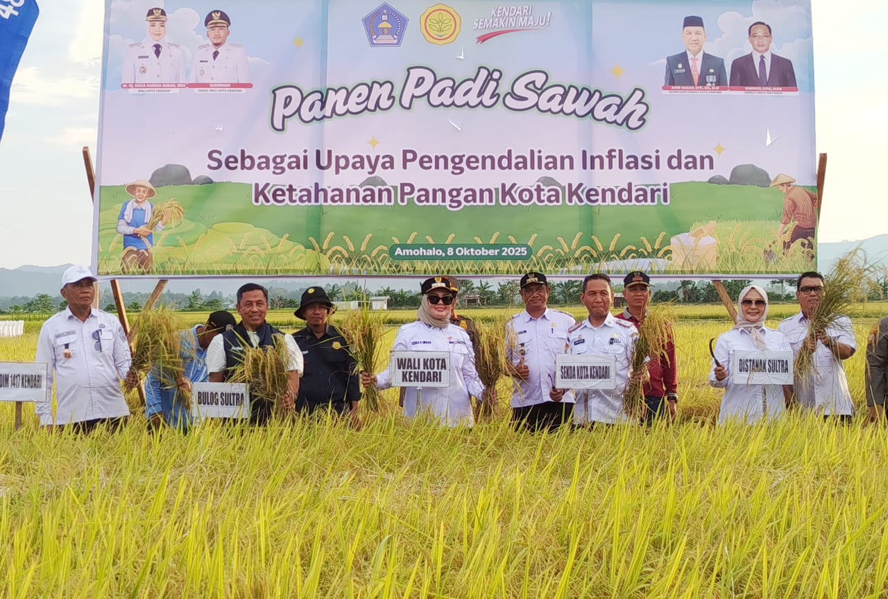KENDARI, MITRANUSANTARA. ID – Di tengah isu naik-turunnya harga beras di sejumlah daerah, para petani di Kelurahan Baruga, Kota Kendari, justru sedang tersenyum lega. Hamparan padi di kawasan Amohalo mulai dipanen, menandai keberhasilan musim tanam kedua tahun ini. Bukan sekadar panen biasa, tapi bukti bahwa kerja keras petani dan perhatian pemerintah mampu menjaga stabilitas pangan dan mengendalikan inflasi di ibu kota Sulawesi Tenggara ini.