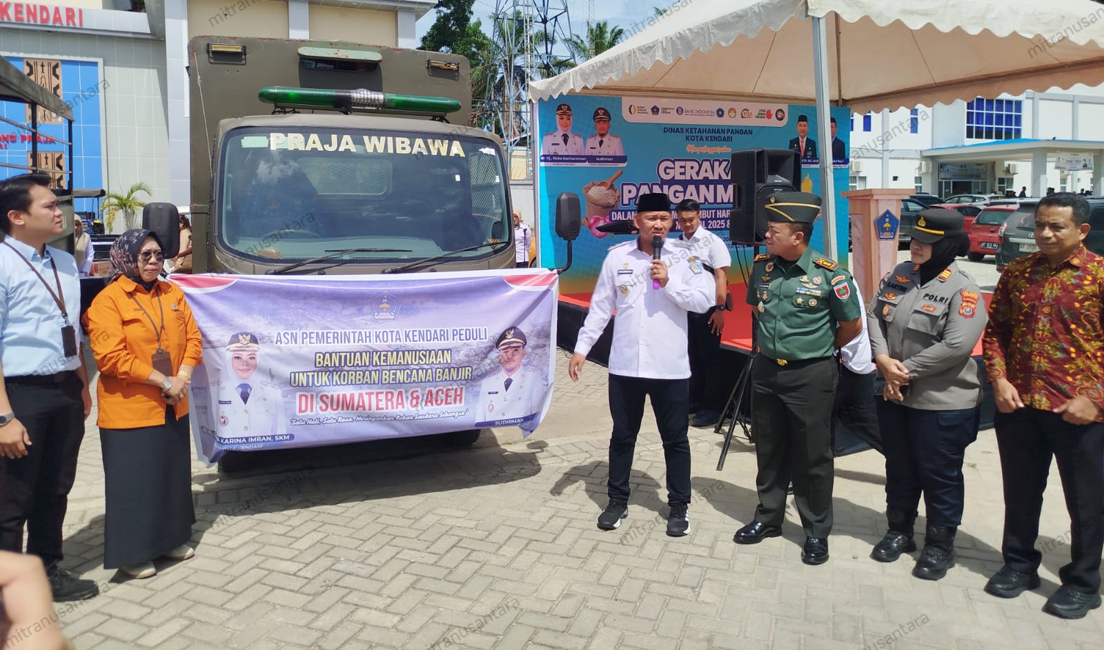 “Hari ini kita melepas bantuan kemanusiaan dari ASN Pemerintah Kota Kendari untuk saudara-saudara kita yang terdampak bencana banjir di Sumatra dan Aceh. Tadi kita lihat satu truk, dan berdasarkan informasi dari Kabag Kesra, ada dua truk bantuan yang akan diberangkatkan,” ujarnya.