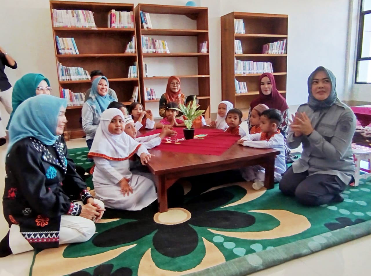 Andi Dajeng turut menyampaikan apresiasi kepada sejumlah mitra, termasuk Bursa Efek Indonesia yang menyumbangkan 100 buku best seller, Gramedia, serta komunitas literasi yang konsisten mendukung pengembangan layanan.