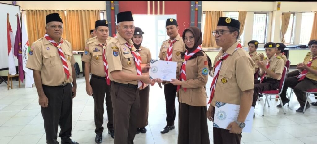 Dalam kesempatan tersebut, Ketua Kwarda Sultra juga menyerahkan piagam penghargaan secara simbolis kepada perwakilan anggota Pramuka Peduli atas dedikasi dan partisipasi aktif mereka dalam mendukung pelaksanaan STQH Nasional di Kota Kendari yang berlangsung pada 9 – 19 Oktober 2025 di pelataran Tugu MTQ Kendari.