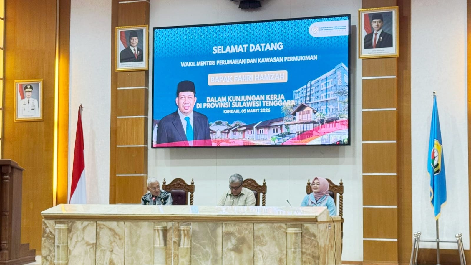 KENDARI, MITRANUSANTARA.ID – Wakil Menteri Perumahan dan Kawasan Permukiman (PKP) Fahri Hamzah menekankan pentingnya penanganan sanitasi dan perumahan secara terintegrasi oleh pemerintah daerah. Hal itu disampaikannya saat melakukan kunjungan kerja di Kota Kendari yang disambut langsung Wali Kota Kendari Siska Karina Imran dan Sekda Provinsi Sulawesi Tenggara Asrun Lio, di Kantor Gubernur Sulawesi Tenggara, Kamis (5/3/2026).